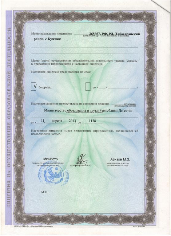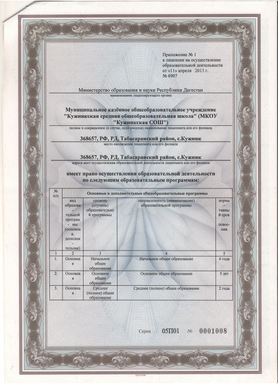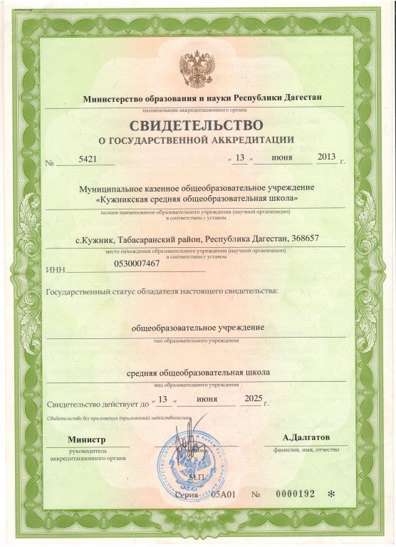 | Адрес местонахождения образовательной организации* | 368657. Республика Дагестан, Табасаранский район, с Кужник, ул. Школьная, 28 |